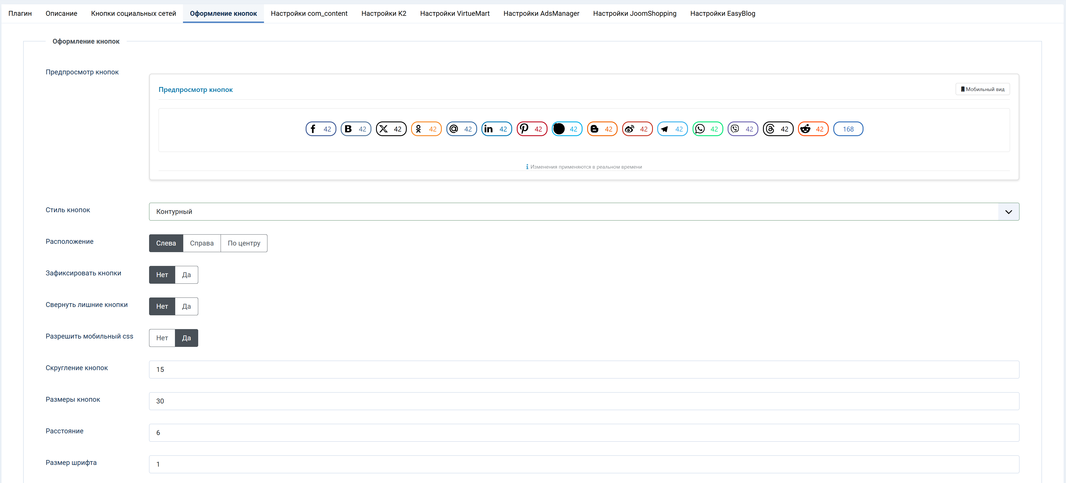 Социальные кнопки Joomla с интеграциями VirtueMart, K2 и JoomShopping